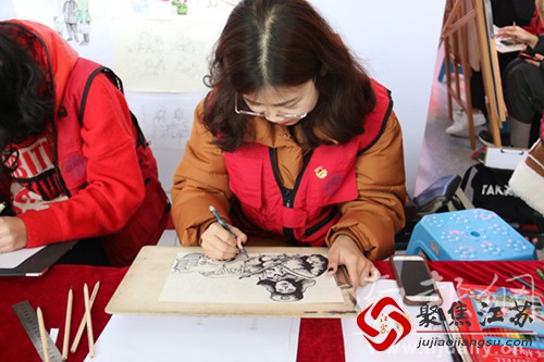 当天上午,南航江宁校区1号楼大厅内一个个身穿红色马甲的学生坐在画板前,用手中的画笔专注地勾勒雷锋的形象,一幅幅栩栩如生的作品吸引了众多同学们驻足。一批同样穿着红马甲的志愿者们则对着展板上的画作,向参观者们讲述雷锋故事。