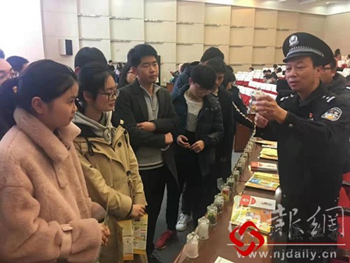 在当天的校园宣讲中,金陵海关驻邮局办事处工作人员进行了名为“海淘那些事”的演讲,向大学生介绍了海关邮递监管的相关政策,科普了禁止进境和出境的物品种类,提醒青年学生在出境旅游或者出国留学时,紧防毒品夹带等骗局陷阱。大连山强制隔离指导科潘继斌老师则向大家介绍了毒品的种类、当今涉毒及感染艾滋病人群的变化趋势、传播途径,警示当代大学生接受信息时要提高警惕,不要轻易接取、饮用不明身份者递送的物品,“一次吸毒终身毁,别拿自己赌明天”。