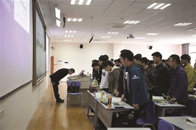 对于上课礼,陈建平是这样解释的,“一是体现师生的相互尊重,同学起立,老师鞠躬,营造的是师生平等的课堂氛围、温文尔雅的校园文化。二是善意提醒同学,让他们尽快进入上课的角色,将‘精、气、神’调整到最佳状态。三是敦促教师,要敬畏课堂,排除杂念,全身心投入教学。”