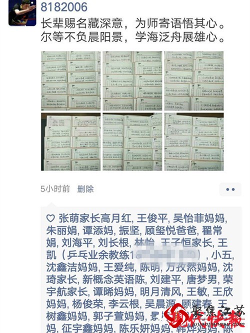 评语写完后,李文根把这些“得意之作”拍成照片发在了朋友圈和班级群里,并赋诗一首:“长辈赐名藏深意,为师寄语悟其心。尔等不负晨阳景,学海泛舟展雄心。”