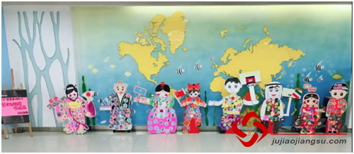 “语言启智 艺术育美”,让幼儿用创造性地思维与环境相互作用,总能给人不一样的感受。大班的孩子们将一个个英文字母变成了各种造型,有的像小人、有的像水果……中班的孩子们亲手设计了八个国家人民的传统服饰,各国的传统服饰都很漂亮。小班的孩子们将各国文化展示在走廊,并用双手简单的涂涂画画,非常有趣。