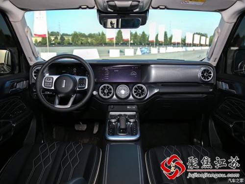内饰方面,新车的内部设计理念遵循了硬派越野的风格,大面积的方直轮廓线条搭配圆润的倒角,此外圆型空调出风口和圆形功能旋钮配以方菱形缝线内饰板,搭配起来更有质感。同时,由双12.3英寸全液晶仪表+中控液晶屏组成的一体式连屏,巧妙的提升了该车的科技感。