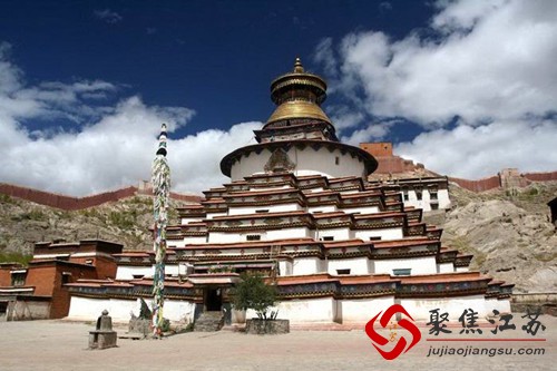 西藏寺院众多,以大昭寺、扎什伦布寺、桑耶寺、哲蚌寺等名气最盛,白居寺与之相比起来,却有特别之处,建筑风格迥然不同,宗教文化也是非常独特。眼前的白塔是四面八角的五层建筑,线条明快,样式别致,又庄严稳重。同时,各教派文化相互融合,也促成了寺庙建筑、壁画艺术等与其它寺庙都不相同的独特特征。白居寺特色之一是一寺容三派,和平共处,相安无事。是一座塔寺结合的典型的藏传佛教寺院建筑,寺中有塔、塔中有寺,寺塔天然浑成,相得益彰。殿堂内绘有十余万佛像,因而得名十万佛塔。
