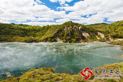 煎锅湖位于新西兰罗托鲁瓦附近的怀芒古火山谷中,1886年的火山喷发形成了一个巨坑,经130年的岁月演变便有了这个湖泊。湖面达38000平方米,水深6米,平均水温在55摄氏度左右。