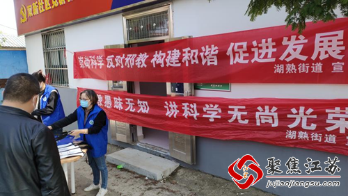 为进一步营造浓厚的反邪、防邪社会氛围,引导居民形成远离邪教、尊重科学、敬畏法律、善待生活的群体意识。近日,湖熟街道双新社区在辖区内开展“崇尚科学 反对邪教”宣传活动,倡导追求文明、崇尚科学的良好风气。