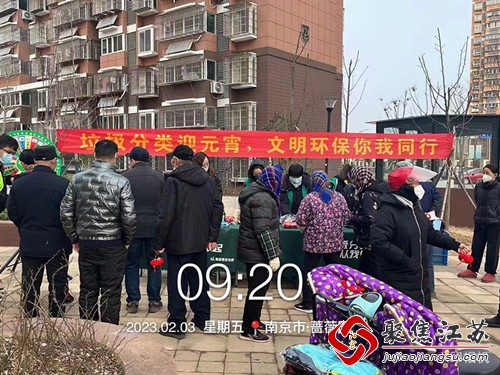 新春伊始,元宵佳节即将如约而至。为弘扬中华民族传统节日,倡导文明新时尚,2023年2月3日上午江宁街道联合南京中颢环境管理服务有限公司在盛江花苑新交付的蔷薇园小区开展“垃圾分类迎元宵,文明环保你我同行”宣传活动。