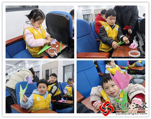 然后,在老师的带领下,孩子们认真地折起了手工郁金香。彩纸在手中翻飞,一朵朵鲜艳的郁金香慢慢绽放。