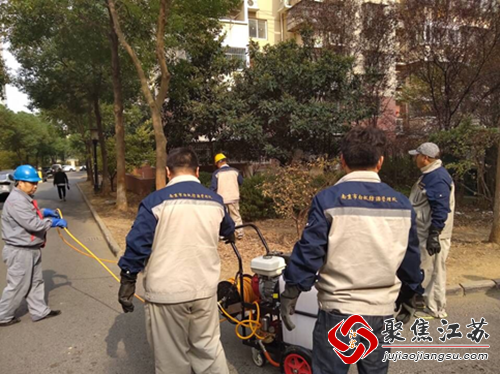 在实地排查中,社区工作人员发现小区内确实有不少香樟数被白蚁侵蚀,树皮脱落外,裹满了泥土。为着力解决居民的生活难题,守护家园绿化。连日来,馨康苑社区特邀南京室白蚁防治管理处的专业人员对所辖馨康苑、福康苑、泰康苑三个小区内被白蚁侵蚀的树木进行了统一消杀,及时为辖区绿化树木“治病”。
