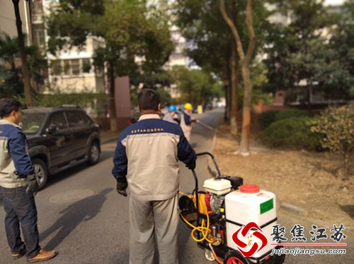 消杀中,专业人员逐一排查,借助专业器具对“生病”树木自下而上进行了药水喷洒,社区工作人员配合测量、记录和引导的同时,还为居民科普了白蚁知识,提醒居民:如果发现白蚁出没,千万不要慌张,要及时向社区反映。