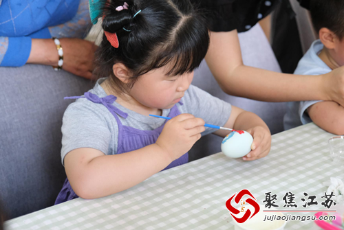 活动开始,志愿者向大家介绍了端午的由来和习俗,紧接着志愿者带领大家一起画彩蛋,将鸭蛋上画出彩色花纹又叫“撞蛋”,并且可以用彩色网袋将鸭蛋挂在孩子的脖子上,寓意“逢凶化吉”。彩蛋不只是食品,更是一种装饰品,在绘画的过程中不仅考验着小朋友们的逻辑思维能力和动手能力,在传承民俗文化的同时,融入了更多快乐。