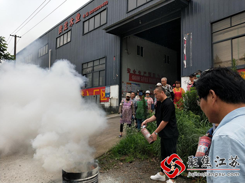 与此同时,组织辖区企业贵龙木业车间班组一线员工开展应急处置演练活动。通过现场演示、现场操作、现场实战,工人们练习亲自使用灭火器及消防水带,提高了一线员工应急处置能力。