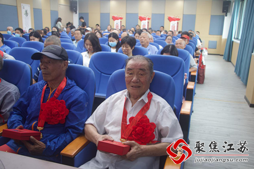 解溪社区党总支邀请了“光荣在党50年”的老党员们来到现场,为他们佩戴绶带、颁发纪念勋章。老党员们戴上勋章后十分激动地表示:“能在建党100周年这样特殊的日子里收到这样一份沉甸甸的礼物,是作为一名共产党员莫大的殊荣。”