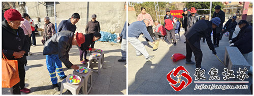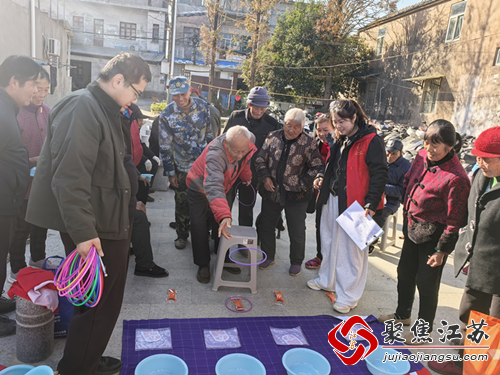 现场氛围热烈浓厚,老人们热情高涨。套圈项目区域尤为热闹:参赛老人凝神屏息,瞄准心仪奖品调整投掷角度;围观者围站一旁,时而为精准命中的选手欢呼喝彩,时而为差之毫厘的尝试轻声惋惜,趣味盎然的场景引得全场笑声不断,温馨融洽的气息弥漫整个活动场地。