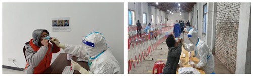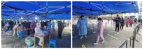 为了确保辖区核酸检测工作高效、科学、及时,横溪社区全体工作人员、辖区企业本地员工、幼儿园老师都积极报名参加志愿者,奔赴到一线抗疫中。经过快速培训后,社区工作人员及志愿者们即刻进入状态,认真完成体温测量、检测登记、人员引导、维持秩序、离场指导、帮助特殊群体等一系列工作。