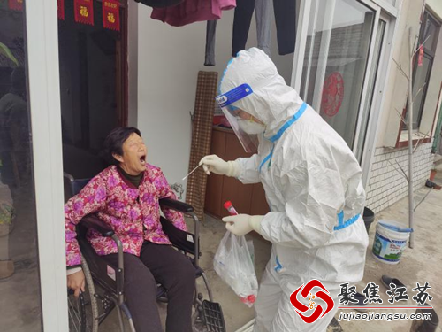 对于年龄大、行动不便的老人,孕妇,残疾人等特殊群体,志愿者们开展点对点服务。为了做到应检尽检,志愿者们前期就做好了登记工作,规划好路线,带领医护人员挨家挨户上门为居民们做核酸检测。居民杨阿姨腿脚不方便,平时出入都是靠轮椅,看到医护人员们来到家里为她做核酸检测感动地说道:“谢谢谢谢,真的谢谢你们!我本来还想着找谁帮忙推我去做核酸,没想到你们就特地上门来!真的太感谢你们了!”