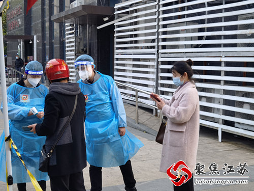 下午3点前,李方帅带领所内8名党员律师,第一时间在外港社区报到,随后被分成两组下沉至江宁区文化馆休闲广场采集点和外港社区党群服务中心门前广场采集点,协助开展全员核酸检测相关工作。