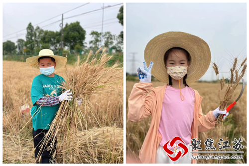 纸上得来终觉浅,绝知此事要躬行。在老师的示范指导下,孩子们们很快掌握了镰刀的使用方法和安全事项,戴好手套,开始忙碌起来,有的割麦,有的拾稻穗,干得热火朝天。