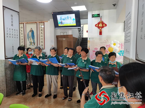 回忆完自己的父亲后,东南社区新时代文明实践点——东南雨花敬老家园老年合唱团给大家带来了歌曲《没有共产党就没有新中国》《父亲》《母亲》等一系列文艺表演。轻快和激昂音乐声、祝福的温情和热情蔓延了整个屋子,感染了在场的所有人,寿星们不由自主地哼起来,在文艺表演的感染下,气氛达到高潮。