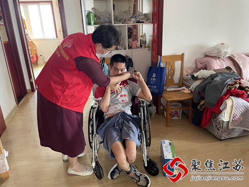 23岁的孙军是泉水社区的一名一级肢体残疾人,因腿部残疾无法行走,生活比较困难,特别是精神生活单调乏味。麒麟街道新时代文明实践中心联合泉水社区志愿者开展了为残疾人送政策、送服务、送爱心活动。