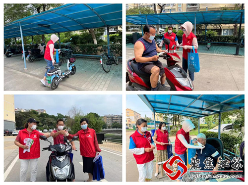 活动中,双金社区志愿者们向群众发放宣传单,热情地向他们讲解文明礼仪常识,劝导乱停车、乱扔垃圾、等不文明现象,提醒骑行的人员一定佩戴头盔,要遵守交通行为规范,并动员大家“人人讲文明,人人争做文明宣传员”。