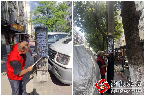 为深入推进文明城市创建工作,美化家园,给社区居民营造了一个良好的卫生环境,近日,胜太社区组织新时代文明实践站的志愿者在辖区内开展集中清理小广告行动。