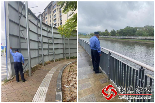 行动中,汤山城市治理综合执法中队安排专人对辖区内主要河流各处水位实时监控,一旦有异样,立即上报。同时街面队员对门头、户外广告等进行安全排查,对发现个别存在广告外立面脱落、加固不够等问题从速整改,督促其在台风来临前做好安全防护工作。