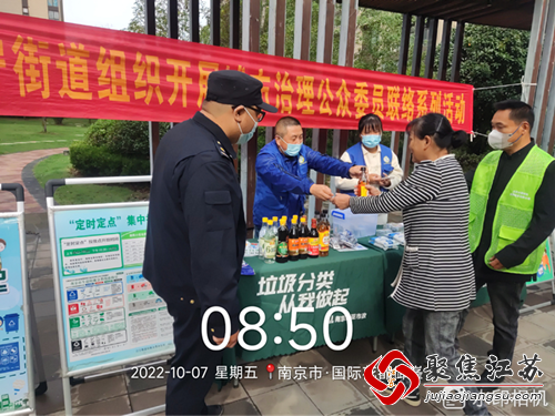 为提高小区居民爱护生存环境的意识,营造良好的社区环境,江宁街道联合南京中颢环境管理有限公司于2022年10月7日在风情雅苑小区开展城市治理公众委员联络系列活动之垃圾分类宣传及积分兑换活动。