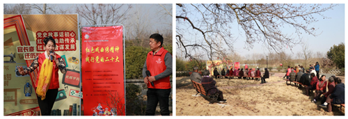 “当当当……”戏曲声响起,村中文化能人韩元军和搭档带来了他们的戏曲表演《洪湖赤卫队》,字正腔圆的表演把大家带入那个战火纷飞的年代,让群众身临其境地感受到人民的困难以及红军英勇奋斗、不怕牺牲的精神,感动不已。“这个活动真有意思,讲的都是通俗易懂的东西,还有戏曲表演,非常精彩,让我觉得作为一个官长村民,要做好自己身边的事情,为社区美丽环境出一份力!”