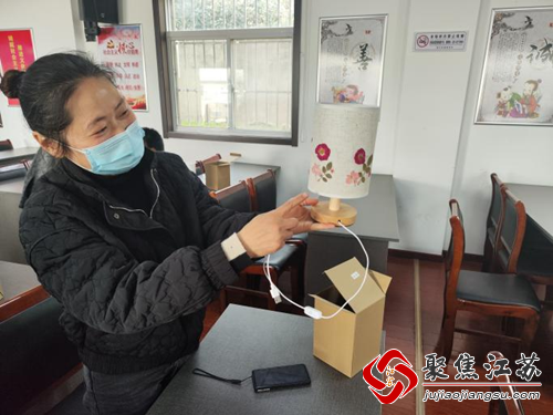 活动现场气氛温馨,志愿者老师首先为大家分享了压花艺术,通过生动的语言和引领,带领女性村民们进入了一个全新的美学世界。接着,老师讲解了压花台灯的设计和制作过程,大家在老师的引导下,每个人根据自己的设计选取压花素材,将花朵、叶子等摆放在白纸上构图。没有特定的设计方式,根据花材的形状、颜色、大小,再加上自己的创意与构思,将花材粘贴、调整、固定,把做好的灯筒与灯座组装在一起,一盏盏独一无二的压花台灯就完成了。