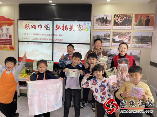 中华民族悠悠五千年的历史长河,造就了无数杰出人物,其中不少是女性。活动伊始,志愿者老师通过视频和PPT介绍了中国历史上杰出的女性代表及其感人事迹。随后,为感恩女性的伟大,志愿者老师带领辖区的青少年们为自己的母亲亲手制作了精美的水拓手工丝巾,从调色、创作、水拓、固色到最后的晾干,孩子们既专注又认真地体验着制作水拓丝巾的全过程。十几分钟后,一块块白色的丝巾经过扎染的自然晕色后,变成风格迥异、花样丰富、色泽亮丽的“艺术品”。在温馨愉悦的氛围中,孩子们沉醉创作、感知惊喜,在领略中国传统文化的同时,也制作出独一无二的礼物送给自己献给母亲。
