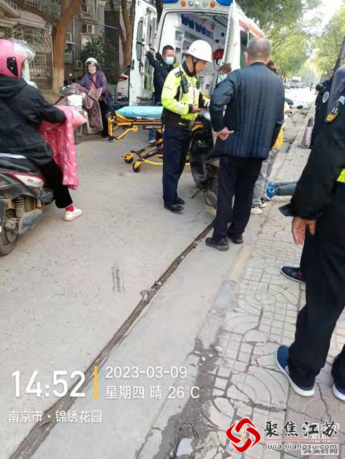 3月9日下午,麒麟街道麒麟铺社区005号网格员李静正进行例行巡查,当时正值锦绣花园幼儿园工地施工时段,小区进出口工程车较多,且周围还有不少围观群众喊道,“快打120啊!”“120的车开的进来吗?”看到这样的情况,网格员李静急忙上前了解。原来刚刚突发了一起电动车交通事故,而伤者正躺在地上等待救治,但当时路面处于十分拥堵的情况,120急救车无法顺利地进入小区。