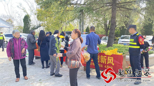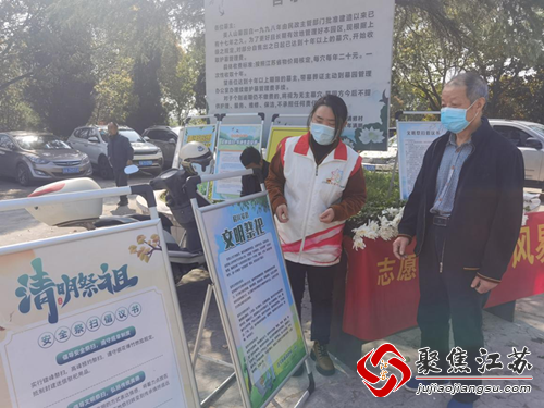 “阿姨,请您不要焚烧纸钱了,这样极易诱发火灾,我们这里有菊花,可以用纸钱免费换取,这是我们的文明祭祀倡议书。”一位志愿者正在向村民介绍着活动内容。活动现场,社区志愿者准备了很多鲜艳的菊花供村民们用纸钱进行交换。村民们见一朵朵精致的菊花,欣然同意了用鲜花代替纸钱进行祭扫,纷纷用自己手上的纸钱来交换菊花进行祭扫活动。村民将菊花放在墓前,用菊花代替了传统的纸钱来表达自己的思旧缅怀之情。不仅寄托了村民们的情感,也让祭扫变得更加低碳、环保、文明了。