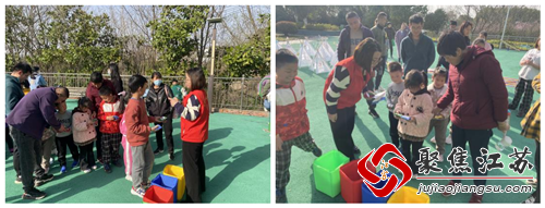 接着,老师带领孩子们开展“环境观察-分享环境保护”小游戏,老师拿着写着各种垃圾小卡片的沙包和孩子们互动,孩子们迅速识别不同的沙包上的垃圾应该投放到哪一类垃圾桶,并投掷到规定的桶内,让孩子们在游戏中掌握分类小窍门,领会垃圾分类的重要性,从而提高分类准确率,培养“绿色、低碳、环保”的理念。