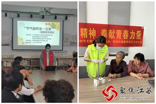 春去夏来,万物繁茂,在立夏将至之际,为进一步普及村民养生知识,有效预防夏季疾病的发生,倡导科学、文明、健康的生活方式,5月6日,秣陵街道周里村新时代文明实践站开展了“节气话养生—立夏”健康宣讲活动,由睦邻互助的社工志愿者为村民们带来养生知识讲座与义诊服务。