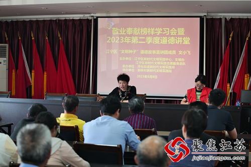 为了激励社区村民积极参与社会实践,并向大家传递敬业奉献的精神,淳化街道新林村新时代文明实践站开展了敬业奉献榜样学习会暨2023年第二季度道德讲堂,并特地邀请江宁区“文明种子”道德故事宣讲团成员文小飞老师进行宣讲。