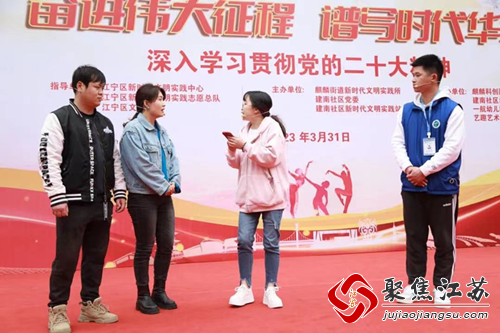 吴聪在工作之余,也积极加入社区的活动中来,在社区开展的“奋进伟大征程 谱写时代华章”文艺汇演中,吴聪和同事一起表演《防诈骗》小品,旨在向老百姓宣传防骗知识,增强居民防骗意识。