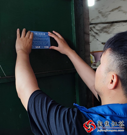 近日,湖熟街道绿杨村网格员为村内的危房村民张贴...