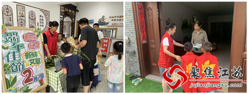 活动室里欢声笑语,孩子们去花园里采摘新鲜的艾草叶、棕榈叶等,用五彩绳一圈圈缠绕在艾草上面,挂上象征福气的小葫芦。为了让这个端午节过的更加意义非凡,建东村的孩子们拿着自己亲手制作的艾草花束进行义卖。义卖现场热火朝天,爱心满满,情意浓浓,“小老板” 们的叫卖声此起彼伏,“顾客”们满载而归,各摊位的商品很快“销售”一空。此次义卖活动得到了周围邻里和家长们的鼎力支持,共筹得善款共60余元。随后,孩子们将筹集的善款,去附近的商店购置粽子、鸭蛋等,上面慰问孤寡老人,将爱心传递给周围邻里。