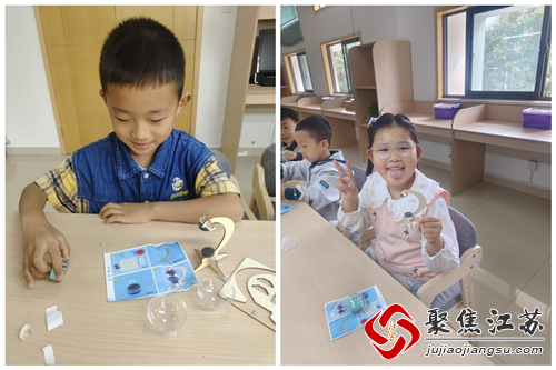 接下来就是孩子的创作环节。孩子们在社工老师的指导下,拼装,衔接,装铁粉......一步一步地,孩子们仔细地将一个个“磁场秀”魔力球制作完成了。
