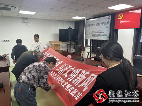 社区党员干部以身作则,积极带头在横幅上签下自己的名字,承诺自觉摒弃陈规陋习、抵制铺张浪费、厉行勤俭节约,以党风政风带动民风,从而将移风易俗工作落到实处,进一步树立良好的文明形象。