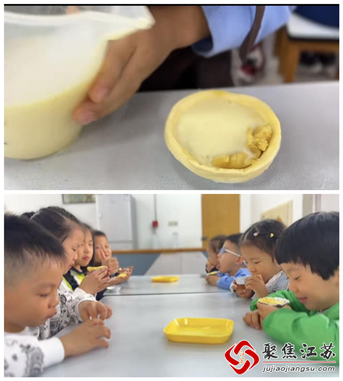 当蛋液搅拌均匀后,孩子们兴奋地将其倒入蛋挞皮中。每一个孩子都小心翼翼地将蛋液注入蛋挞皮内,他们的脸上洋溢着对美味的期待和自豪。最后,经过老师的指导,孩子们把装有蛋液的蛋挞皮放入预热好的烤箱中。在等待的过程中,孩子们兴致勃勃地讨论着蛋挞的味道和烤制的技巧。
