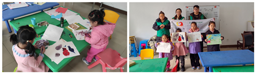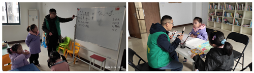 为了让孩子们更好地理解诗歌,志愿者还为孩子们讲述了这首诗的故事和主旨。在融入文学知识的同时,孩子们还接受了绘画的启发。志愿者在黑板上用粉笔进行简笔画的示范,引导孩子们根据诗中的意象进行绘图,完成了一次集体的艺术创作。接下来,孩子们在自主绘图的过程中通过想象力展现了对诗意的理解。最精彩的瞬间是让孩子们上台描述自己绘画的想法,他们生动而真诚地分享了自己对诗歌的感悟和表达。