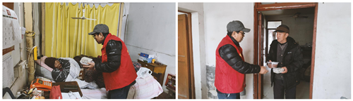 考虑到有些老人行动不便,但是为了让这些老人也同样能感受到来自社区大家庭的关爱问候,志愿者们用保温袋将腊八粥打包送到了老人的家里,并送上了大米以示慰问。老人特别地感动,那一声声真切的谢谢也温暖了志愿者。临走前,志愿者们还叮嘱老人注意身体健康,注意冬季取暖用电安全,有困难一定及时沟通联系。面对社区的上门关怀,几位老人都非常感动,感谢社区一直以来对他们的挂念和照顾。