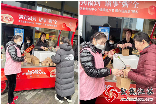 为传承中华传统文化,营造祥和的节日氛围,1月18日,麒麟街道泉水社区新时代文明实践站联合南京信泰创新中心开展“邻里齐相会 粥到暖人心”腊八主题活动,为辖区居民、清洁工等送去温馨的节日祝福,用心将温暖传递给每一位受惠者。