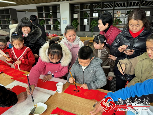 “翰墨探春,书写幸福”迎新年。书法大师们在红彤彤的纸上挥毫泼墨,行云流水,运笔走势间一幅幅饱含笔墨幽香的福字、一对对饱蘸笔力祝愿的春联跃然纸上,寓意着人们对新生活的喜悦和美好愿望。现场的孩子们跟着大师们,小小的手儿攥着笔,一横一竖,一撇一捺,书写着一幅幅喜庆、欢乐的福字,让活动现场充满了浓浓的年味和无限的生机。