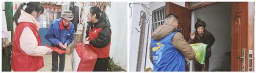 走访慰问中,社区网格员虞鹏飞、邹光辉、何宗敏、刘栋按照网格划分,分别走访慰问片区内的散居特困供养人员,网格员们每到一户,都与老人们促膝畅谈、嘘寒问暖,悉心了解他们的身体近况、生活需求和实际困难,并为他们送上慰问金、棉被、米和暖心的新春祝福对联,同时叮嘱他们有什么困难和问题可随时向社区网格员反映,要照顾好自己的生活,过个好年。一句句暖心的话语,一次次贴心的问候,让困难群众倍感温暖。居民群众连连感谢,困难群众徐爷爷激动的说道:“谢谢你们的关心。”