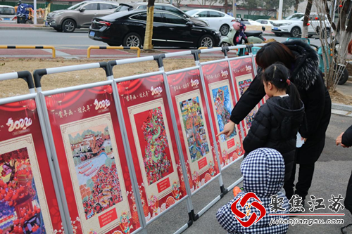 活动伊始开展了2024年“赏年画 过大年”主题文明实践活动,展出了从全国各地遴选出的优秀年画作品,年画作品中有象征着吉祥如意的福字、寓意着年年有余的鱼、还有描绘着传统节日场景,居民们一边欣赏优秀作品,一边向身边的孩子讲解年画的美好寓意。
