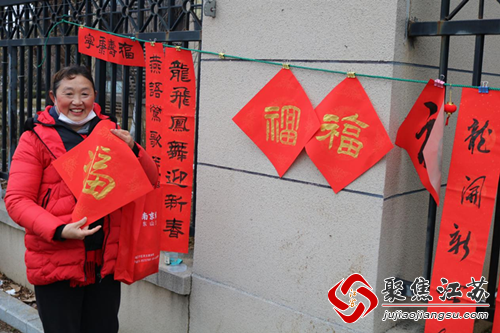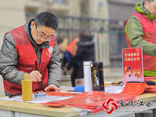 活动特别邀请了中国好人江永新来参加“冬训微服务 写福送关怀”写春联福字活动,他将美好的祝福融入到一幅幅春联中,拿到的居民都纷纷点赞。