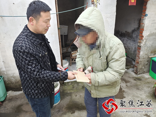 近日,湖熟街道绿杨村网格员为村内的危房村民张贴...