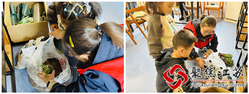 除此之外,活动中还组织大家进行了番茄苗的种植体验活动。孩子们利用一些废旧的塑料杯,亲手挖土、播种、浇水,体验了种植蔬菜的乐趣。他们纷纷表示,以后要多吃蔬菜,珍惜食物,不再浪费。